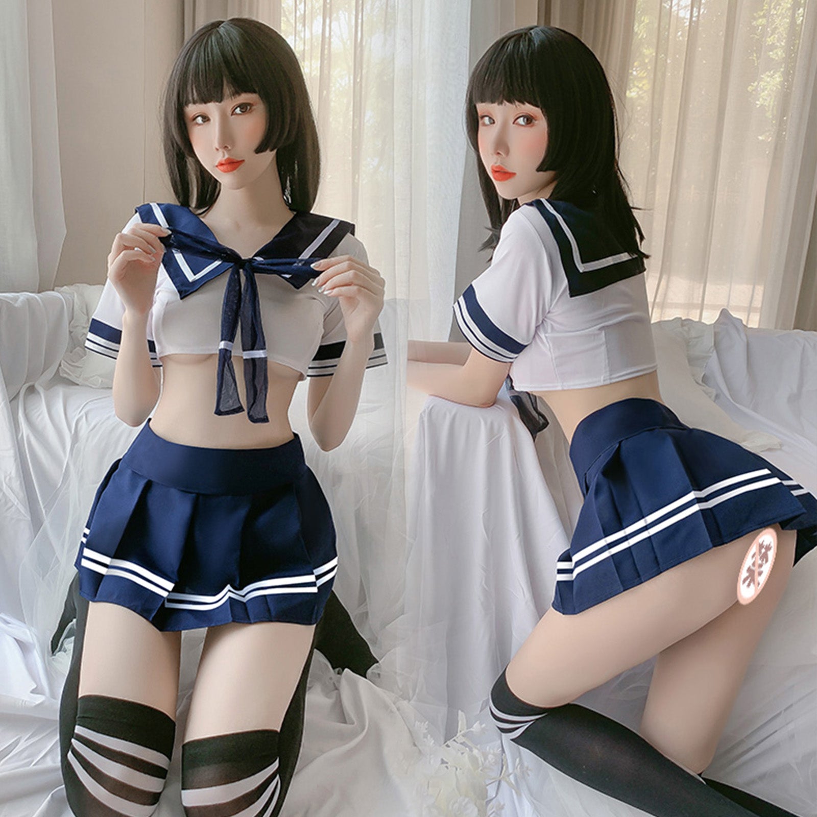 Design: Anime girls underwear: kawaii sailor outfit set, navy collar and mini stripe pleated skirt, you will be a girl from anime