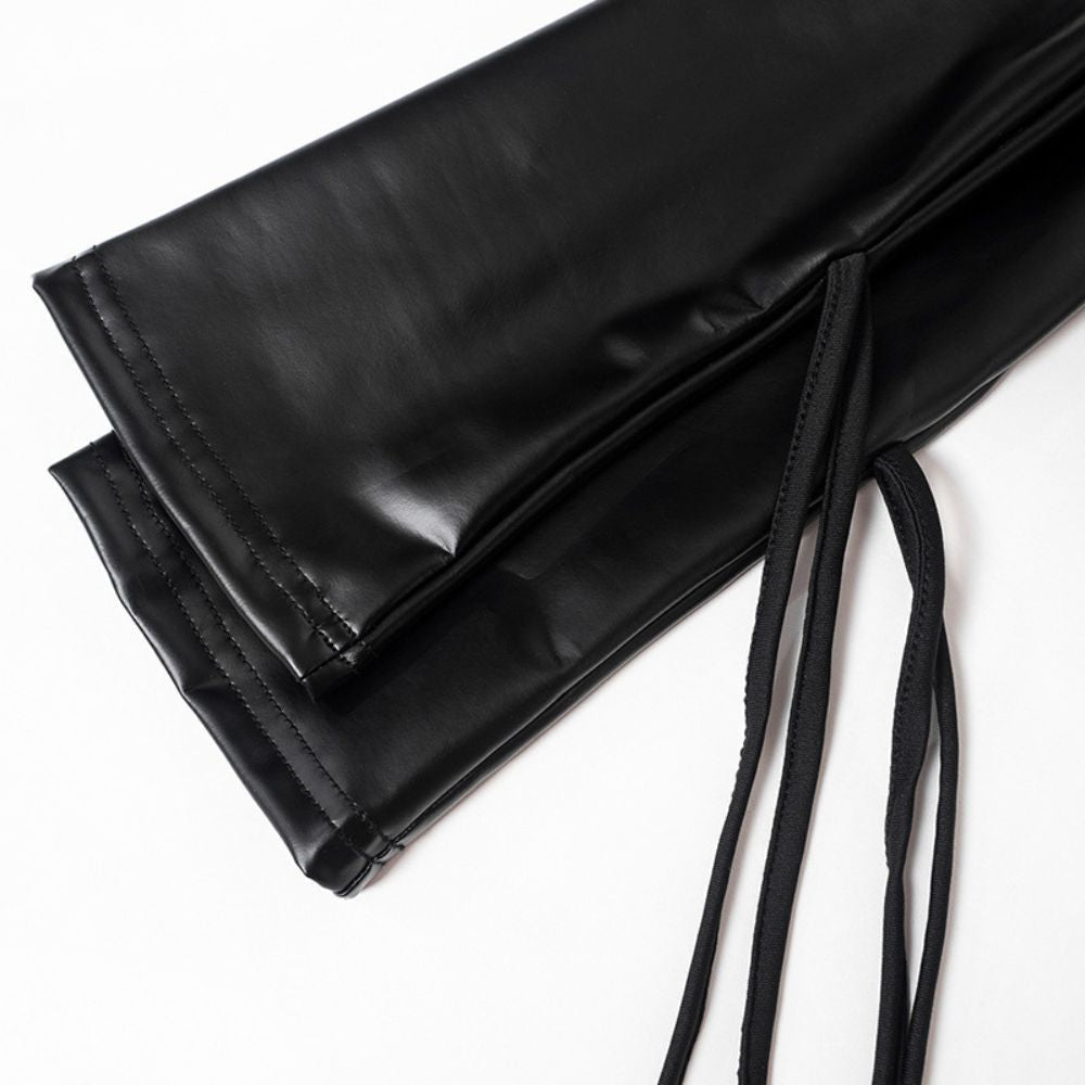 Design:��Irresistible Off Shoulder Faux Leather Bodycon Dress��featuring an��black wet look off-the-shoulder dress with a��fuzzy trim,��long bell sleeves,��Elevate your everyday look with timeless and classic style.��