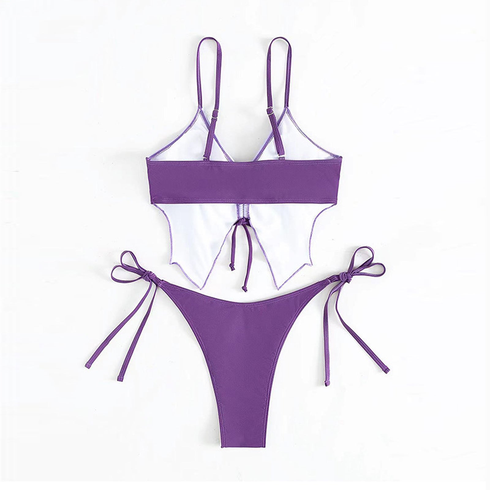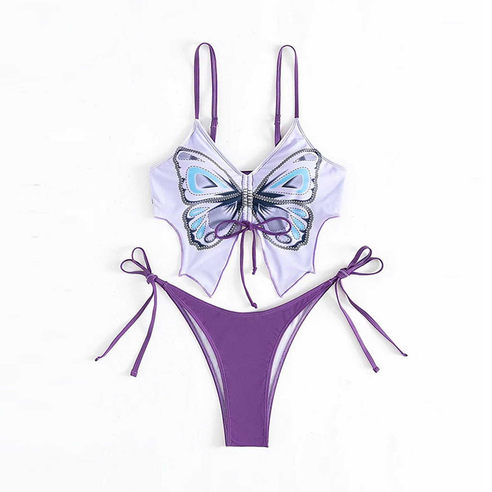 - 2 Piece Bikini Set: Add some y2k vibes to your swim wardrobe with these butterfly bikinis. They have a longline bikini top, features butterfly on the front, adjustable spaghetti straps, and has drawstring tie detail. With matching a thong bottom features v notch and adjustable tie-up waist style.